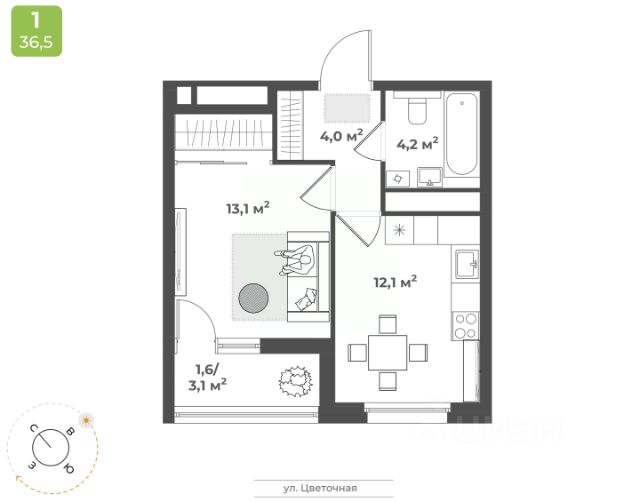 Продаётся 1-комнатная квартира в строящемся доме (Дом 2), срок сдачи: IV-кв. 2026, общей площадью 36.7 кв.м., на 12 этаже. Будущий жилой квартал - это уникальный для Твери проект, обеспеченный всем необходимым для жизни: благоустроенный двор без автомобилей, детские площадки для разных возрастов, зоны для спорта, продуманные планировки квартир. На территории комплекса появится новая школа на 1224 мест и центральный бульвар. Квартал расположен в Заволжском районе на пересечении улиц 2-я Красина и Цветочная. В месте, где транспортными магистралями связаны сразу пять микрорайонов в Заволжье: ближнее Заволжье, Соминка, Радужный, МЖК и Юность. Что обеспечивает жителям квартала удобную транспортную доступность. Кампус ТвГУДетский сад 5Городская клиническая поликлиника 7Фитнес-клубМагазины продуктов питанияПочтовое отделение 10Бассейн "Парус"Напротив квартала планируется строительство школы на на 1224 местаДома расположены так, чтобы у жителей создавалось ощущение уюта и безопасного пространства. Все, что нужно для спокойного и тихого отдыха, находится во дворе, а подход к магазинам, парикмахерским, салонам услуг - с внешней стороны квартала. Двор внутри квартала принадлжеит только жителям, в нем нет случайных прохожих и проезжающих автомобилей. Мы выбрали проект, который предполагает, что дома в квартале будут разной высоты - от 9 до 25 этажей. Это позволяет избежать монотонности в застройке, а кроме того, благодаря чередованию высоких и низких секций во дворе больше солнца.