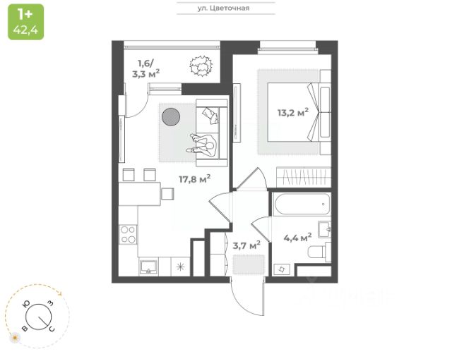 Продаётся 1-комнатная квартира в строящемся доме (Дом 2), срок сдачи: IV-кв. 2026, общей площадью 36.7 кв.м., на 9 этаже. Будущий жилой квартал - это уникальный для Твери проект, обеспеченный всем необходимым для жизни: благоустроенный двор без автомобилей, детские площадки для разных возрастов, зоны для спорта, продуманные планировки квартир. На территории комплекса появится новая школа на 1224 мест и центральный бульвар. Квартал расположен в Заволжском районе на пересечении улиц 2-я Красина и Цветочная. В месте, где транспортными магистралями связаны сразу пять микрорайонов в Заволжье: ближнее Заволжье, Соминка, Радужный, МЖК и Юность. Что обеспечивает жителям квартала удобную транспортную доступность. Кампус ТвГУДетский сад 5Городская клиническая поликлиника 7Фитнес-клубМагазины продуктов питанияПочтовое отделение 10Бассейн "Парус"Напротив квартала планируется строительство школы на на 1224 местаДома расположены так, чтобы у жителей создавалось ощущение уюта и безопасного пространства. Все, что нужно для спокойного и тихого отдыха, находится во дворе, а подход к магазинам, парикмахерским, салонам услуг - с внешней стороны квартала. Двор внутри квартала принадлжеит только жителям, в нем нет случайных прохожих и проезжающих автомобилей. Мы выбрали проект, который предполагает, что дома в квартале будут разной высоты - от 9 до 25 этажей. Это позволяет избежать монотонности в застройке, а кроме того, благодаря чередованию высоких и низких секций во дворе больше солнца.