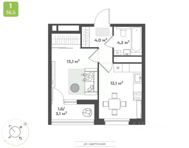 Продаётся 1-комнатная квартира в строящемся доме (Дом 2), срок сдачи: IV-кв. 2026, общей площадью 35.6 кв.м., на 14 этаже. Будущий жилой квартал - это уникальный для Твери проект, обеспеченный всем необходимым для жизни: благоустроенный двор без автомобилей, детские площадки для разных возрастов, зоны для спорта, продуманные планировки квартир. На территории комплекса появится новая школа на 1224 мест и центральный бульвар. Квартал расположен в Заволжском районе на пересечении улиц 2-я Красина и Цветочная. В месте, где транспортными магистралями связаны сразу пять микрорайонов в Заволжье: ближнее Заволжье, Соминка, Радужный, МЖК и Юность. Что обеспечивает жителям квартала удобную транспортную доступность. Кампус ТвГУДетский сад 5Городская клиническая поликлиника 7Фитнес-клубМагазины продуктов питанияПочтовое отделение 10Бассейн "Парус"Напротив квартала планируется строительство школы на на 1224 местаДома расположены так, чтобы у жителей создавалось ощущение уюта и безопасного пространства. Все, что нужно для спокойного и тихого отдыха, находится во дворе, а подход к магазинам, парикмахерским, салонам услуг - с внешней стороны квартала. Двор внутри квартала принадлжеит только жителям, в нем нет случайных прохожих и проезжающих автомобилей. Мы выбрали проект, который предполагает, что дома в квартале будут разной высоты - от 9 до 25 этажей. Это позволяет избежать монотонности в застройке, а кроме того, благодаря чередованию высоких и низких секций во дворе больше солнца.