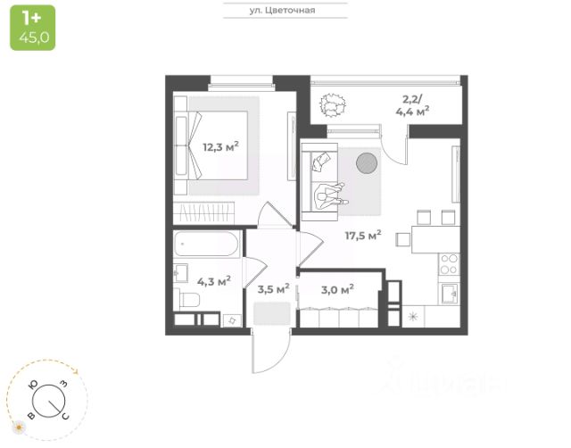 В квартире стены с гипсовой штукатуркой, санузел с черновой.