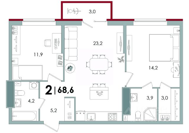 Санузел - 6.98 м2