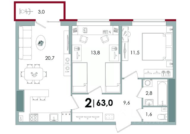 Балкон - 3.36 м2