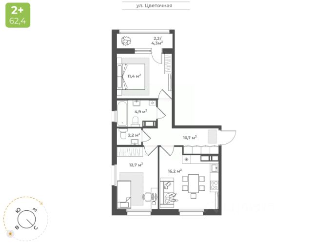 • ✅ Минимальная площадь: 43,5 м²
