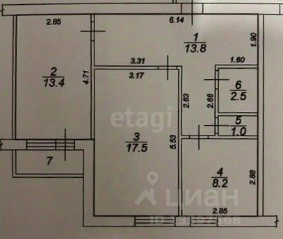 Квартира обладает продуманной планировкой: общая площадь 58,4 кв.м, включает в себя функциональную кухню 8,2 кв.м., две изолированные комнаты площадью 17,5 и 13,5 кв.м., одна из которых имеет выход на балкон, раздельный санузел, а так же просторную прихожую площадью 13,8 кв.м, в которой обустроена система хранения.