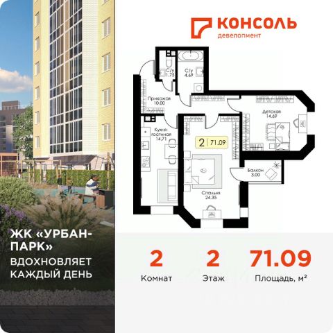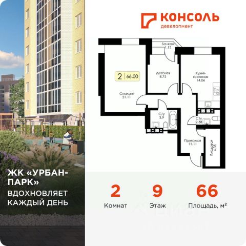 Продаётся 2-комнатная квартира в сданном доме (Оснабрюкская улица, 22к1), срок сдачи: III-кв. 2024, общей площадью 67.8 кв.м., на 21 этаже.