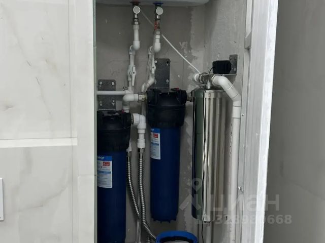 Установлена комплексная система очистки воды Аквафор S550, включающая в себя самоочищающийся фильтр, обезжелезиватель и умягчитель воды. Система фильтрации воды удаляет соли жесткости, железо и марганец.