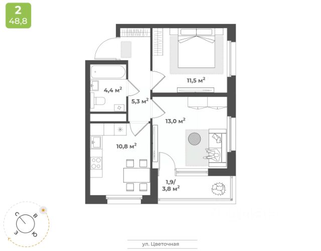 Продаю 2к квартиру с большой кухней-гостиной в новостройке, в Заволжском районе.
