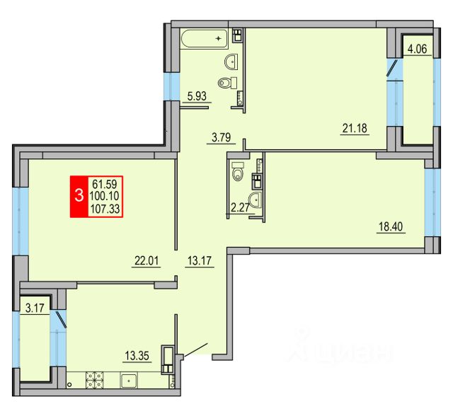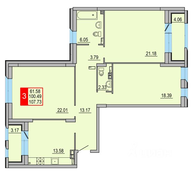 Продается 3-х комнатная квартира комфорт-класса в ЖК Премьер Парк, расположенная на 12-м этаже 12-ти монолитного дома 2014 года постройки. Общая площадь без учёта холодных помещений 107,6 м.кв., комнаты изолированные: 21.1+17.3+18.7 м.кв., кухня 25.5.м.кв., два санузла: 6,0 м.кв.+3.7 м.кв., высота потолков 2.9 м.