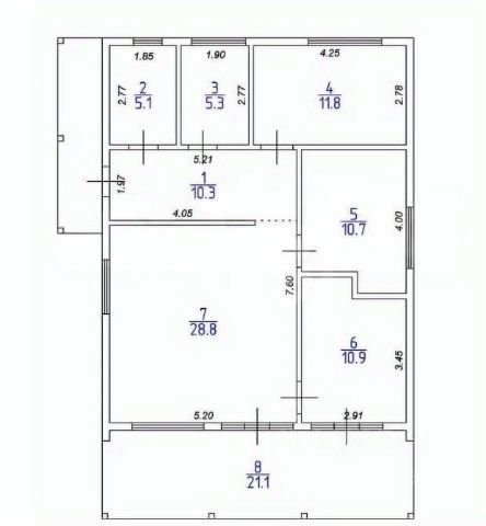 Коридор 11 м2, санузел 2 м2, гардероб 11 м2, комната 13 м2, комната 11м.
