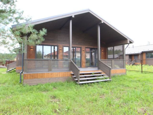Стены кирпич, наружное утепление, обшит немецким сайдингом.