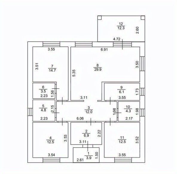 Состоит из крытого крыльца, кухни, прихожей, и двух комнат.