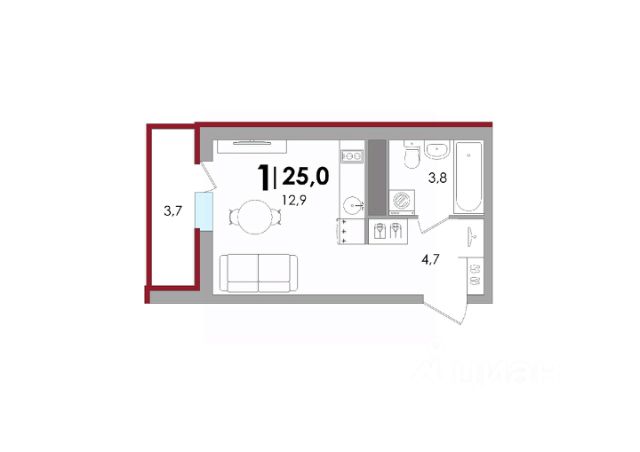 • ✅ Минимальная площадь: 21,3 м²