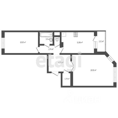 Продается квартира общей площадью 46,9 кв.м.