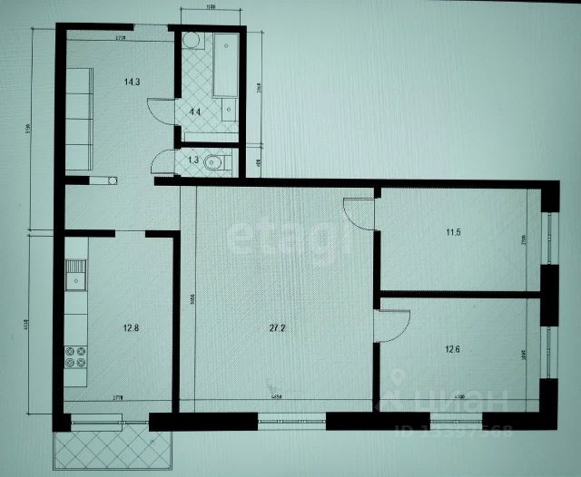 Год постройки дома 2014. Кирпичный. Потолки 2.70. Общая площадь 84.1.санузлы раздельные. Площади помещений: прихожая -12, кухня-12, две раздельные спальни по 12, гостинная-27. Балкон не застеклён. Пол- линолеум.