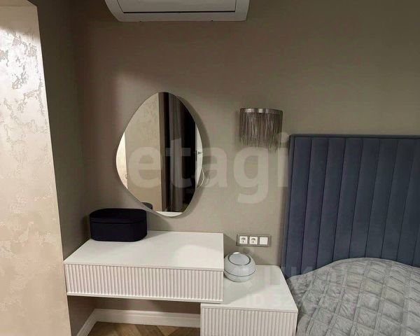 Спальня: Кровать 180см, кондиционер, подвесные тумбы и туалетный столик с зеркалом с подсветкой, телевизор Нisеnsе 55 диагональ, люстра и светильники в одном стиле с дистанционным управлением, зеркальная дверь в гардеробную.