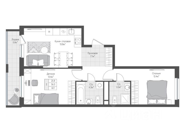 2-комн. квартира с готовой отделкой в ЖК "ЭТОТ", г. Тверь Продается квартира с кухней-гостиной и двумя спальнями по разные стороны от гостиной. Мастер-спальня с собственными гардеробной и санузлом. Лоджия с выходом из кухни-гостиной. Окна выходят во двор, что позволит наблюдать за прогулкой детей во дворе. Что входит в отделку "Комфорт+"? - Надежная металлическая входная дверь; - Качественные шпонированные межкомнатные двери; - Износостойкий ламинат и современная керамическая плитка; - Светлые флизелиновые обои и натяжные потолки в каждой комнате; - Санузел "под ключ": плитка от пола до потолка, вся сантехника установлена; - Установлены приборы учета, интернет, домофон; - Лоджия/балкон с чистовой отделкой и остеклением. - Гарантия 12 месяцев от застройщика! Отделка включена в ДДУ. Преимущества ЖК "ЭТОТ": - Нет шумного ремонта у соседей все квартиры сдаются с готовой отделкой! - Чистые, просторные подъезды с 2 входами (двор/парковка) и безбарьерной средой для удобства всех жителей, включая семьи с детьми и маломобильных граждан. Есть колясочные. - Двор без машин! Безопасные детские и спортивные площадки. - Прогулочные зоны с декоративной подсветкой и зелеными насаждениями для ежедневных прогулок и пробежек. - Зоны коворкинга и помещение для проведения досуга с семьей или соседями на территории жилого комплекса Идеальное расположение: В шаговой доступности: новый детский сад и современная школа, спортивные и образовательные центры. Рядом крупный торговый кластер: ТЦ "Торговый парк N1", "Лемана Про", "Петрович", "Глобус". Надежный застройщик: - ГК "РКС Девелопмент" 18 лет опыта, все объекты сдаются точно в срок! - Золотой знак "Надежный застройщик России" и высший балл по оценке Единого реестра застройщиков. Не упустите свой шанс на комфортную жизнь! *Стоимость предложения актуальна на момент публикации. Актуальные цены уточняйте в отделе продаж ЖК "ЭТОТ". Не является публичной офертой. Адрес отдела продаж: г.Тверь, ул. Оснабрюкская д.12.