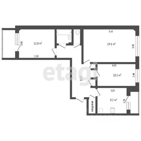 Ванная 3.9 м2
