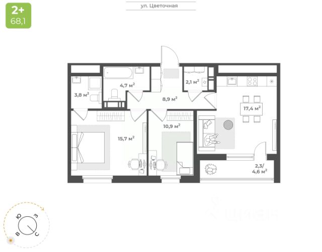 Продаётся 2-комнатная квартира в строящемся доме (Дом 2), срок сдачи: IV-кв. 2026, общей площадью 46.9 кв.м., на 8 этаже. Будущий жилой квартал - это уникальный для Твери проект, обеспеченный всем необходимым для жизни: благоустроенный двор без автомобилей, детские площадки для разных возрастов, зоны для спорта, продуманные планировки квартир. На территории комплекса появится новая школа на 1224 мест и центральный бульвар. Квартал расположен в Заволжском районе на пересечении улиц 2-я Красина и Цветочная. В месте, где транспортными магистралями связаны сразу пять микрорайонов в Заволжье: ближнее Заволжье, Соминка, Радужный, МЖК и Юность. Что обеспечивает жителям квартала удобную транспортную доступность. Кампус ТвГУДетский сад 5Городская клиническая поликлиника 7Фитнес-клубМагазины продуктов питанияПочтовое отделение 10Бассейн "Парус"Напротив квартала планируется строительство школы на на 1224 местаДома расположены так, чтобы у жителей создавалось ощущение уюта и безопасного пространства. Все, что нужно для спокойного и тихого отдыха, находится во дворе, а подход к магазинам, парикмахерским, салонам услуг - с внешней стороны квартала. Двор внутри квартала принадлжеит только жителям, в нем нет случайных прохожих и проезжающих автомобилей. Мы выбрали проект, который предполагает, что дома в квартале будут разной высоты - от 9 до 25 этажей. Это позволяет избежать монотонности в застройке, а кроме того, благодаря чередованию высоких и низких секций во дворе больше солнца.