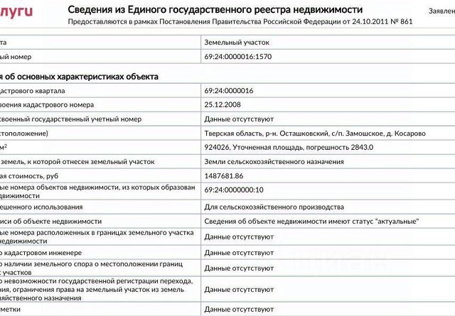 Данная цена действует только до 30 ноября. Подаю участок 5,7 га 600 метров от от берега озера Селигер. Живописное место. Для строительства дачного посёлка. Документы в порядке. Снт, Днп. Земельный участок под Базу Отдыха или Экотуризма. В окружении леса и реки, купание, рыбалка, охота, грибы, луг, растительность, рыбалка возможна как коммерческая, так и природная, в том числе подводная охота. Для отдыхающих желающих сбежать от городской суеты (Москвы или Санкт-Петербурга) в нетронутую природу, но при необходимости не далеко есть все блага цивилизации. Кадастровая стоимость участка 10 000 000 . Кадастровый номер участка 69:24:0000014:1445 Без посредников и риэлторских контор. От собственника. Участок в первозданном виде возможно воплощение любых идей и проектов. Реальному покупателю возможен торг. Так же возможен обмен на авто или недвижимость.