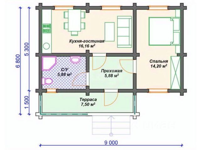 Капитальный деревенский дом, площадью сруба 60 кв.м (7х8,5 м), не считая летней террасы. Электричество 5 кВт, деревенский тариф. Общая площадь под крышей 108 кв.м.