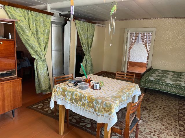 Продается просторный дом на участке 10 соток, вместе с участком. Дом обжит, не заброшен, необходим косметический ремонт по возможности. Характеристики: Фундамент: состояние плиты отличное, в некоторых местах требует косметического ремонта (осыпалась штукатурка). Кровля: перекрыта ондулином в 2023 году. Материал стен: рубленые. Забор: рабица по периметру установлена в 2024 году. Участок: Тихая улица, соседей по четырем сторонам нет. Ровный участок правильной формы с плодовыми деревьями (яблоня, вишня) и ягоды (малина, смородина, крыжовник, клубника). Коммуникации: Газ магистральный Электричество Центральное водоснабжение Канализация выгребная яма Отопление: Газовый котел - в октябре 2025 года произведена замена старого котла на новый ЛУЧ КСГ-16, рассчитанный на площадь до 160 м2. Отопительная система заполнена теплоносителем Термоплюс -30. Печное отопление (дополнительно). Инфраструктура: Автобусная остановка напротив дома. В 2026 году планируется замена асфальтового покрытия по улице Луначарского. Детский сад в 400 метрах. Школа в пешей доступности (20 минут). Магазины 5-15 минут. Поблизости озеро (15 минут), лес (5 минут). Часовня (3 минуты, работает по субботам). Преимущества: Высота потолков 3,5 метра. В доме 3 подвала, высотой 0,7м, 1м и 2 метра. Один взрослый собственник, собственность более 15 лет. В живую смотрится лучше чем на фото. В объявлении представлены не все комнаты.
