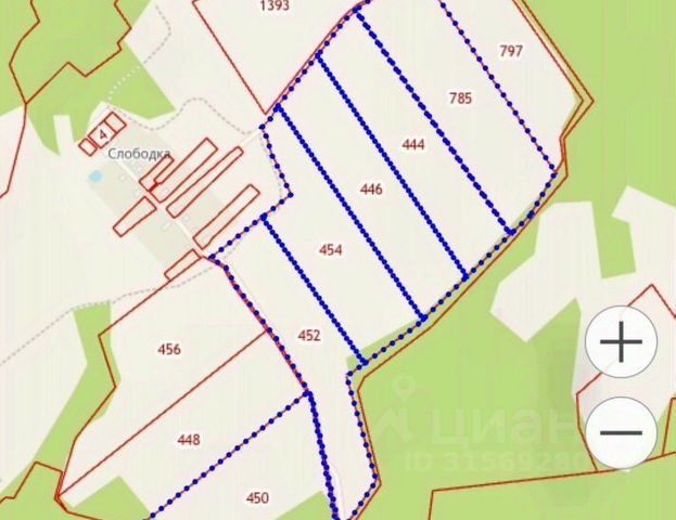 7,8 Га в собственности, 85 соток ИЖС, 7 Га - земли С/Н. Участок правильной формы, высокий, на участке растут взрослые деревья - сосны, березы. Собственный выход к реке Лама.