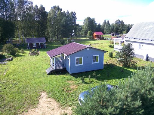 Рядом с задним крыльцом дома летний душ с подогревом воды в баке. Туалет на участке (пудр клозет).