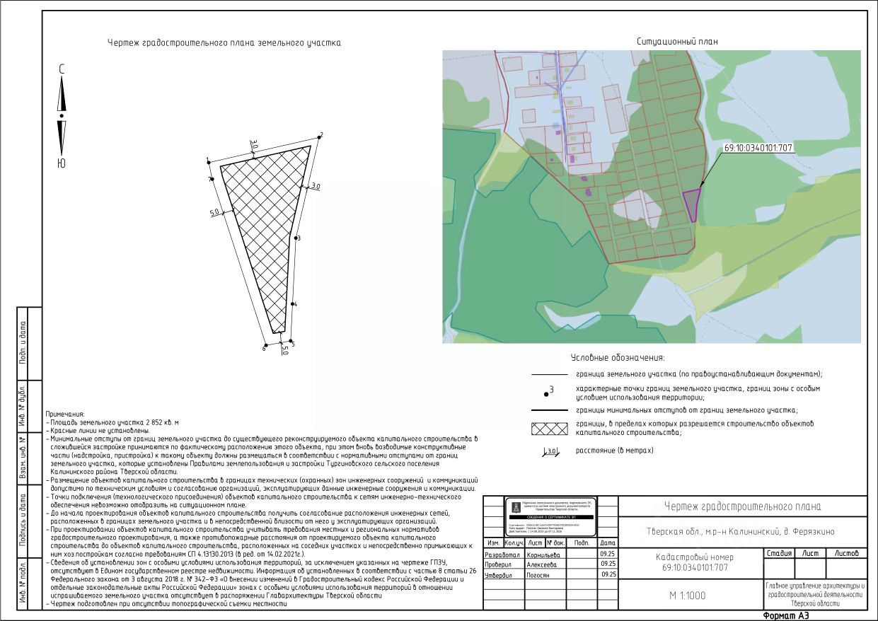 Право на заключение договора аренды земельного участка, государственная собственность на который не разграничена, площадью 2 852 кв.м, с кадастровым номером 69:10:0340101:707, местоположение: Тверская область, м.о. Калининский, д. Ферязкино.