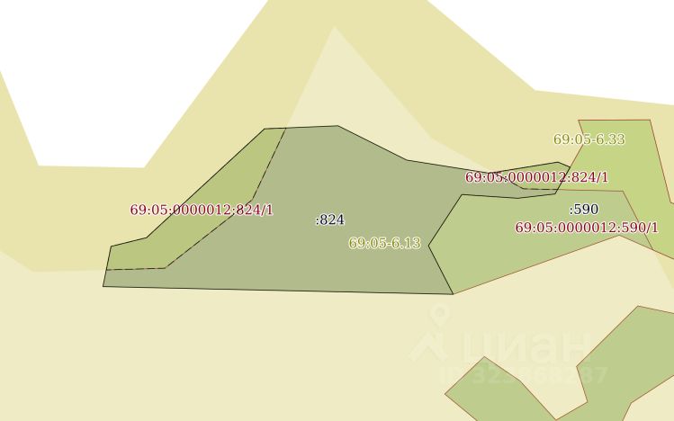 Земельный участок с кадастровым номером 69:05:0000012:824, площадью 13045 кв.м, местоположение: Тверская область, муниципальный округ Весьегонский, колхоз "Восход".
