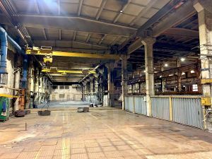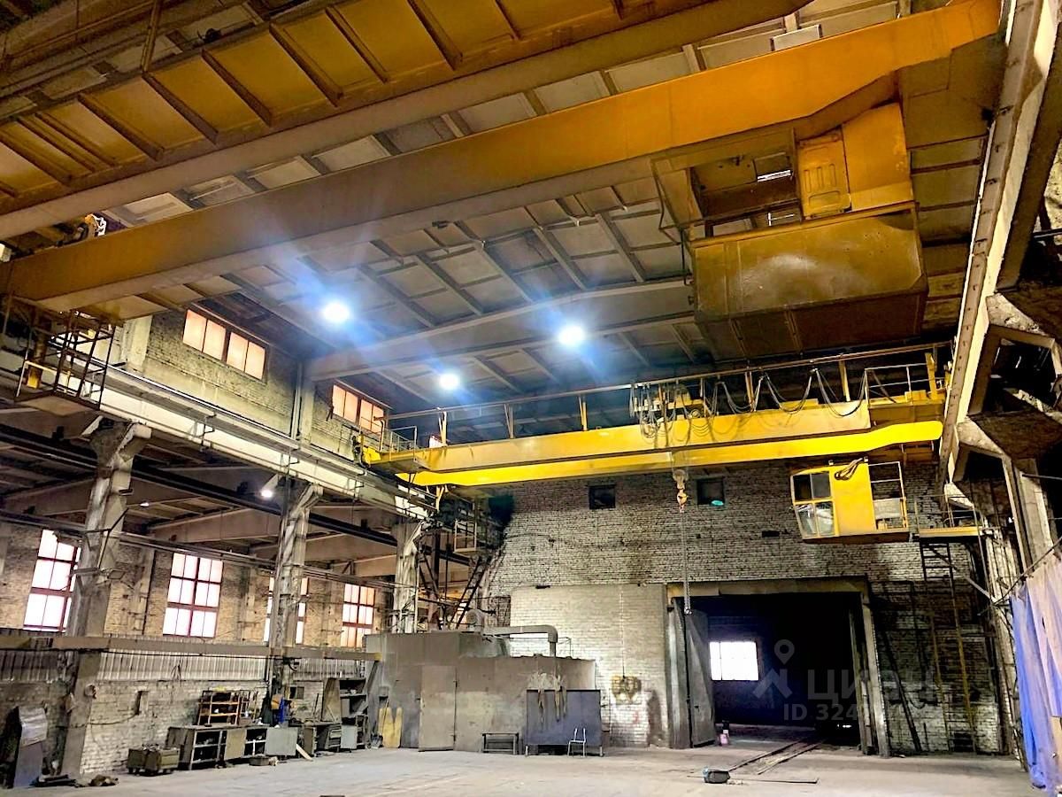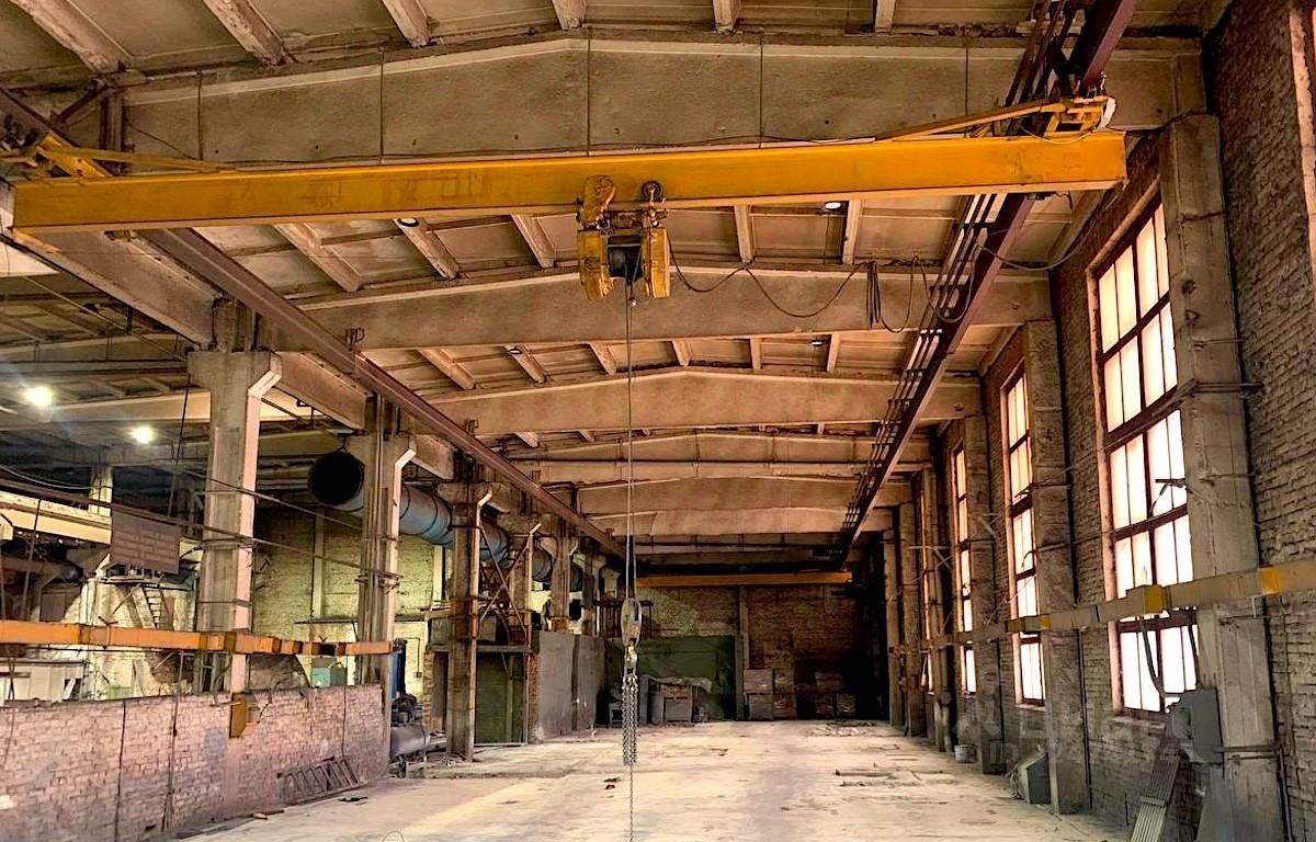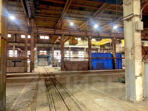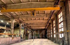 - Производственная часть площадью 10 000 м² состоит из пяти пролетов шириной от 12 до 18 м. Высота 10 м. В каждом пролете установлено от 2 до 3 единиц кранового оборудования г/п от 5 до 10 т. Высота до крюка 7 м. Полы бетонные. Несколько ворот под фуру размером 4 х 5 м. Цех не отапливаемый.
