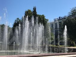 **большие панорамные окна на фонтан и проспект