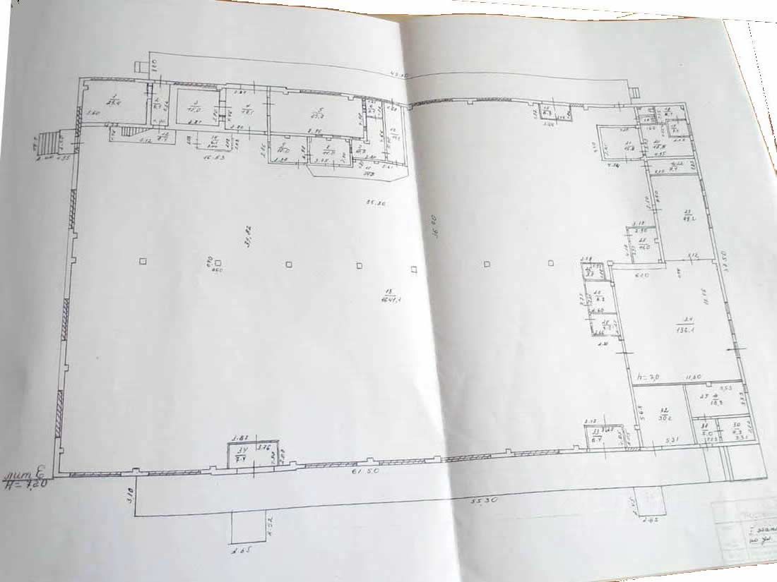 Высокие потолки, бетонный пол, освещение, вода, канализация.
