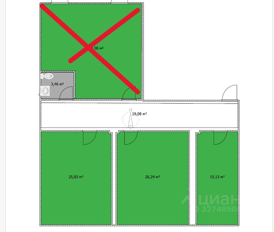 Общая площадь25,83 м²