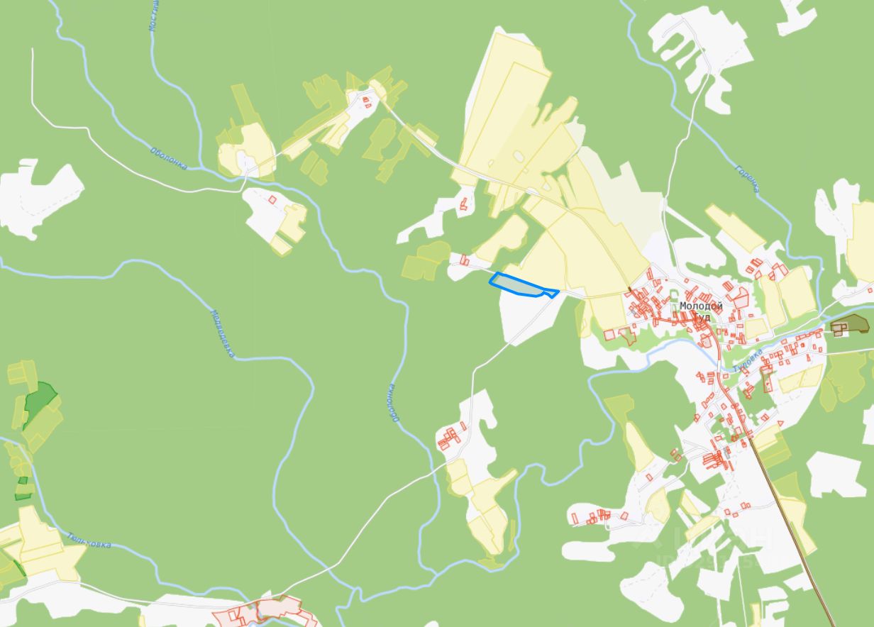 Земельный участок с кадастровым номером 69:23:0000009:281 площадь 105114 по адресу обл.Тверская, р-н Оленинский, с/п Молодотудское, в районе д. Коршуны