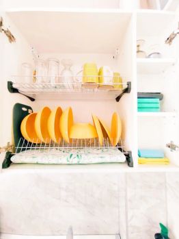 кухня с обеденной зоной и посудой