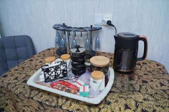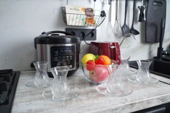 На кухне имеется все для пригот. приема пищи ( мультиварка, тостер, микр. печь, листовой и пакетированный чай т. д. )