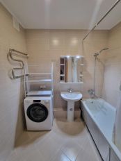 В квартире есть кухонный гарнитур, вытяжка и варочная панель, холодильник, стиральная машинка, зеркало в ванной. Заселяйтесь и создавайте интерьер своей мечты!