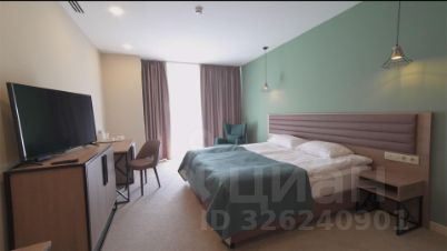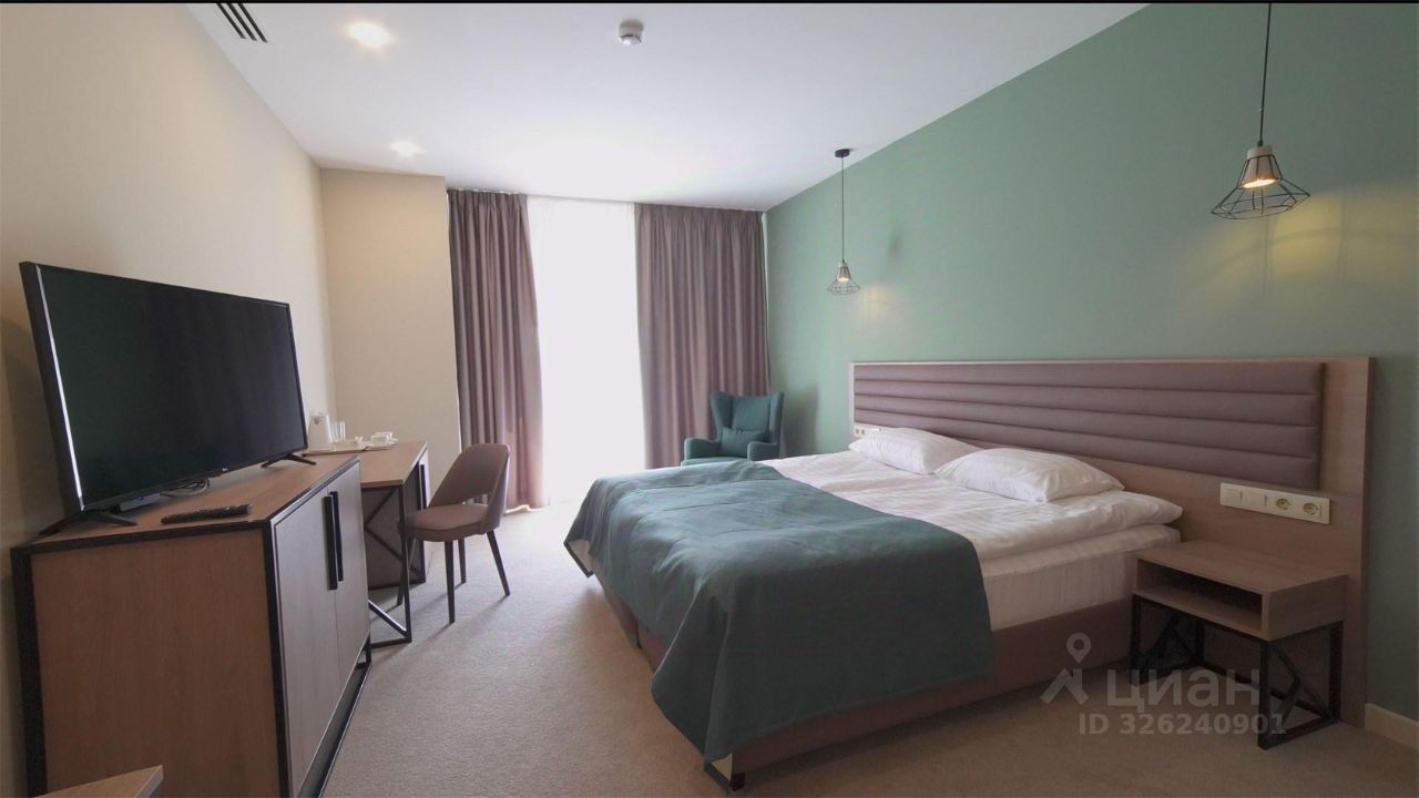 В номере большая двуспальная кровать или две односпальные, прикроватные тумбы, журнальный стол, кресло, шкаф. Санузел: душевая кабина, туалет, биде.