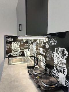 В квартире есть всё необходимое для жизни: кухня, холодильник, микроволновка, плита, чайник, посуда, раскладной диван-кровать, большой платяной шкаф, обеденный стол, стулья, душ, стиральная машина, комод, обувница и т.д. Панорамная лоджия.