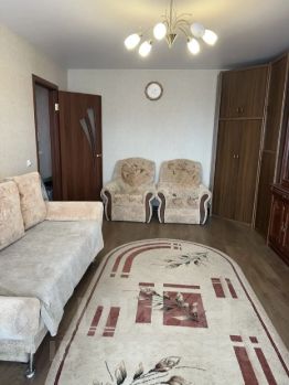 В квартире есть всё для комфортного проживания: комната с выходом на балкон,имеется комфортный диван евро, два креслами,комод, телевизор, журнальный столик;