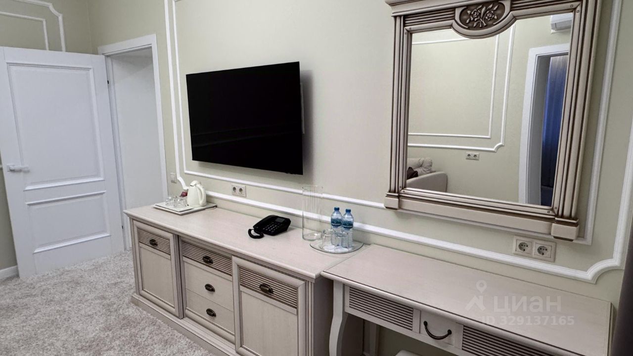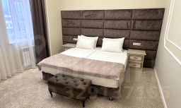 Двухкомнатный номер. В спальной комнате кровать 1,8*2м, прикроватные тумбы, плечики для одежды.