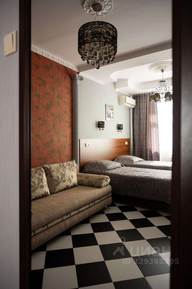 В номере две односпальные кровати, кондиционер, прикроватная тумба, шкаф для одежды, телевизор ЖК,холодильник, санузел с косметическими принадлежностями.