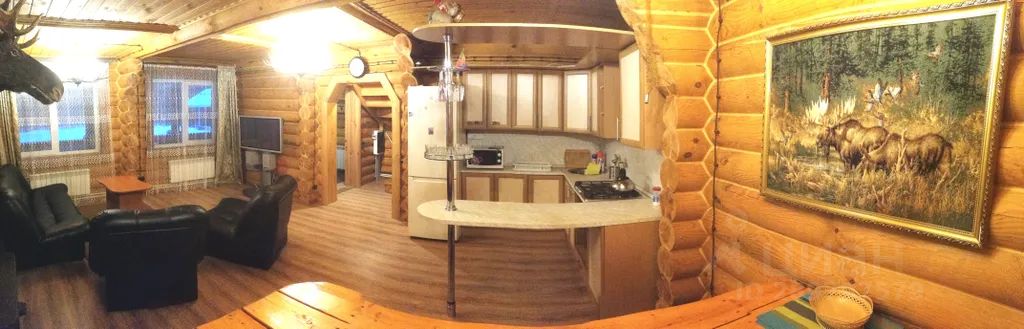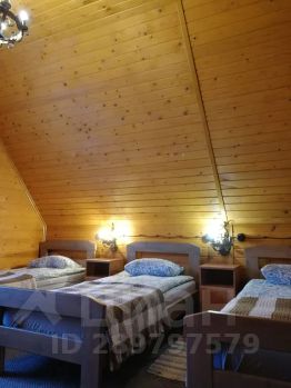 Кухонный гарнитур, барная стойка, кожаная мебель (диван и 2 кресла), журнальный столик, подставка под tv (плазменная панель), деревянные большие столы (2 шт. ), деревянные лавки, кровати одноместные (6 шт. ), кровать 2-х местная (1 шт. ), комод, прикроватные тумбочки (6 шт. )