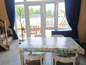 В домике большие понарамные окна, 2 этажа 3 отдельных комнаты имеется 1кровать1,4м и 4 односпальные кровати 0.9м.