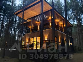 Дом состоит из трёх спален с 2мя комфортными двуспальными кроватями, большого просторного зала- кухни с большим раскладным диваном и кухонным гарнитуром, прихожей с гардеробом, туалета с душевой, а также лестницы с коридором второго этажа. Дом на обоих этажах по периметру окружён террасами, закрытыми крышей. Площадь террас- 83м2. Площадь самого дома без учёта террас- 101м2. Каждая комната дома имеет панорамные окна в пол. В случае непогоды или просто нежелания выходить на улицу, Вы можете оставаться в единении с лесом, озером и природой, находясь среди молодых сосен, прямо внутри дома, спрятавшись от непогоды внутри или на террасах. Дом имеет все самые комфортные городские условия для проживания, включая теплые полы, всю бытовую технику (включая посудомойку, стиральную машинку, микроволновку, духовой шкаф, варочную панель, холодильник, вытяжку), посуду, постельное бельё, туалет, ванную с тропическим душем, полотенцесушитель, смарт-ТВ Philips Ambilight, Wi-Fi, шкафы, столы, тумбы, полки, кровати, диван, мангал и т.д.