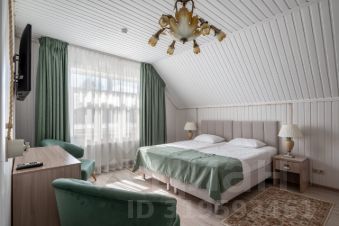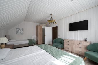 Гостиная излучает свет и предлагает насладиться спокойными вечерами на мягком диване или уютных креслах, добавляя нотку элегантности вашим посиделкам. Спальня оформлена в светлых, успокаивающих тонах, обеспечивая идеальные условия для полноценного отдыха.