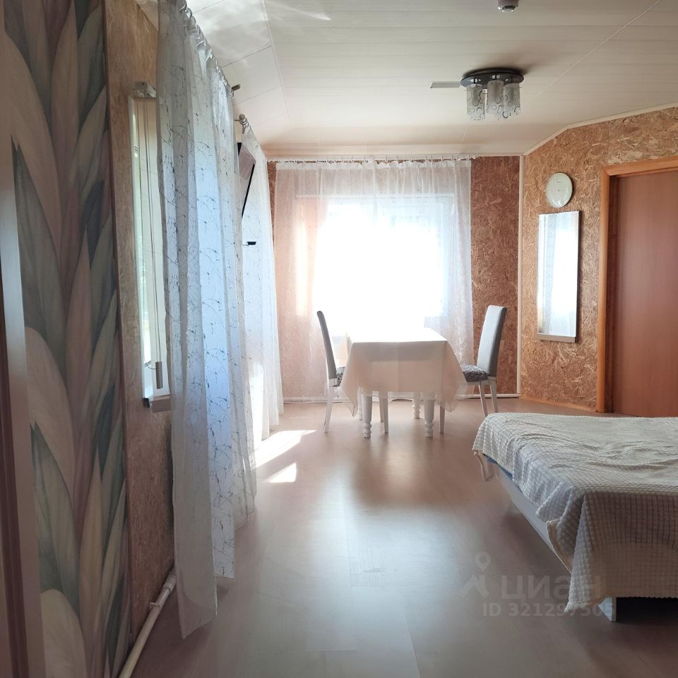 В доме одна комната 25 кв.м. все три окна выходят на Селигер. Кровать на 140 и двухъярусная кровать(90/200). Прикроватные тумбочки,шкаф, обеденная зона.
