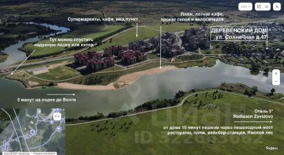 300 метров до пешеходного моста через реку до отеля Редиссон Завидово.