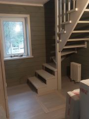 -прихожая со встроенной мебелью для одежды, широкая удобная лестница на второй этаж,
