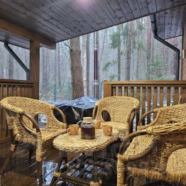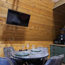 Вас ожидает уютный А-фрейм. Дом новый, имеется вся необходимая техника, посуда и другие вещи о которых мы подумали за Вас. Окна дома выходят в лес, и Вы можете насладиться его видом с просторной веранды или через обзорные окна.